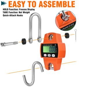 Lleva la potencia de una báscula de grúa a cualquier lugar. Con capacidad de hasta 300 kg (660 lbs) y una estructura de aluminio fundido ultra resistente, esta balanza es perfecta para agricultura, ganadería, pesca y logística. Cuenta con pantalla LCD retroiluminada, función de bloqueo de peso (HOLD) y cambio de unidades (kg, lb, N). ¡Resistente a impactos y lista para el trabajo rudo!